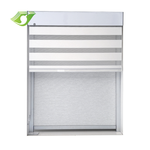 Persianas enrollables de doble capa personalizadas, cortinas de tela diurnas y nocturnas con aislamiento térmico para una mayor eficiencia energética